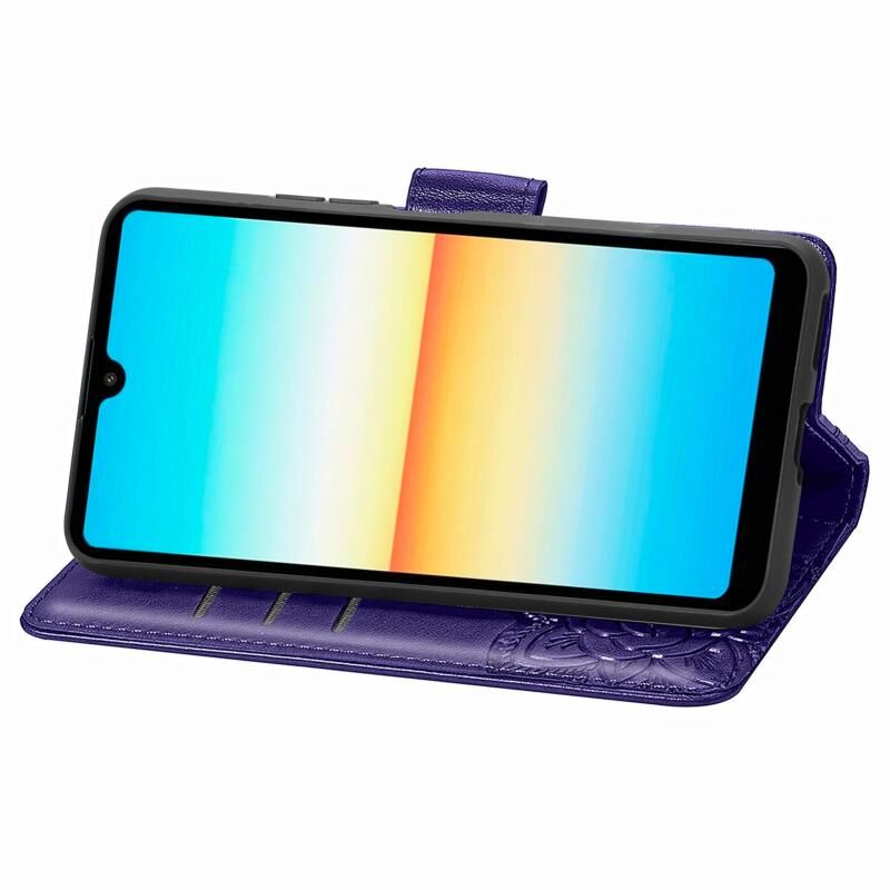 Για το Sony Xperia Ace III Πεταλούδα αγάπη λουλούδι ανάγλυφο δερμάτινη θήκη τηλεφώνου (σκούρο μωβ)