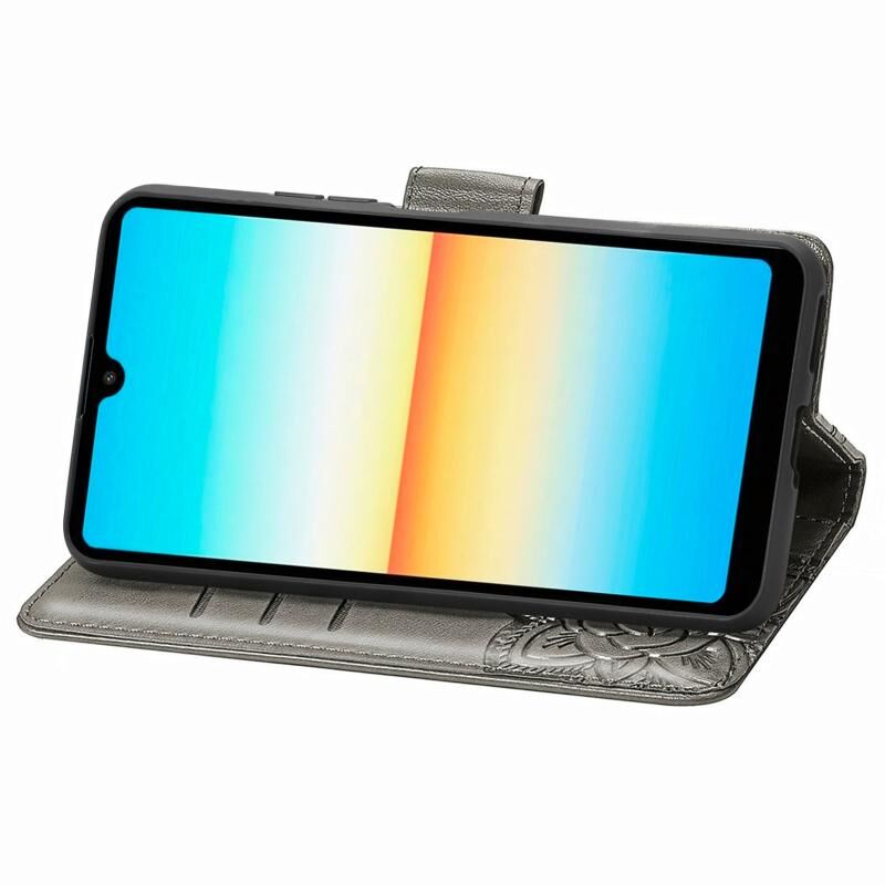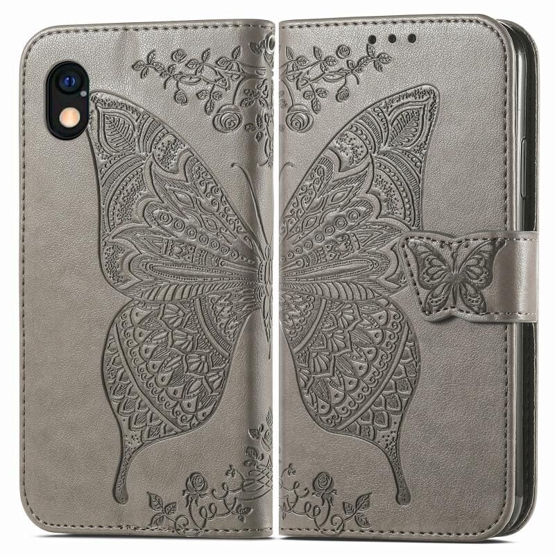 Για Sony Xperia Ace III Πεταλούδα αγάπη λουλούδι ανάγλυφο δέρμα υπόθεση τηλεφώνου (γκρι)