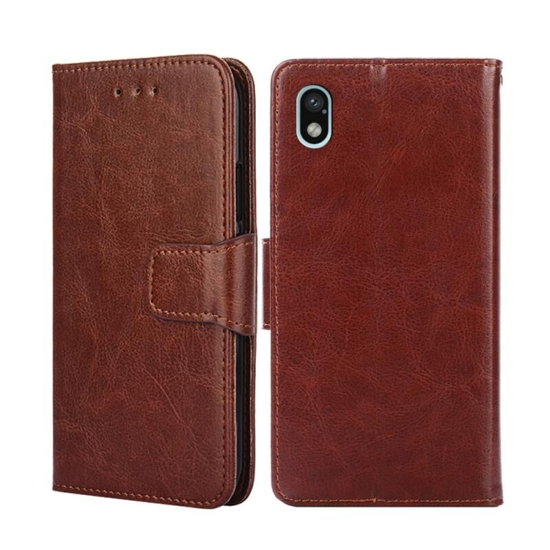 Για Sony Xperia Ace III Θήκη τηλεφώνου από δέρμα με κρυστάλλινη υφή (καφέ)