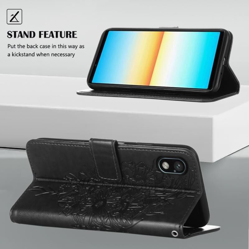 Για Sony Xperia ACE III ανάγλυφη θήκη τηλεφώνου με δέρμα πεταλούδας (μαύρο)