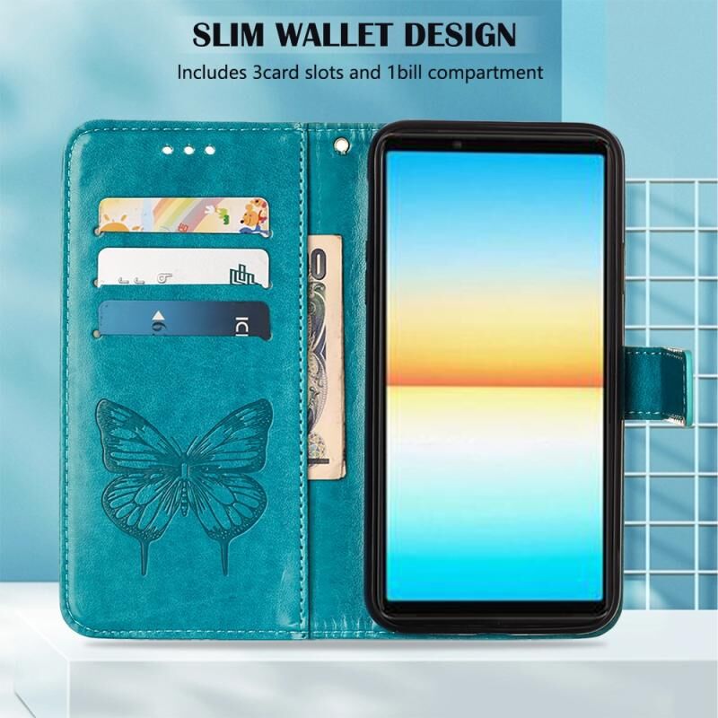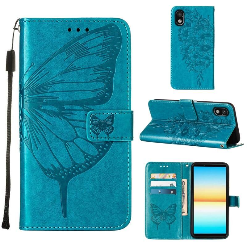 Για Sony Xperia ACE III ανάγλυφη θήκη τηλεφώνου με δέρμα πεταλούδας (μπλε)