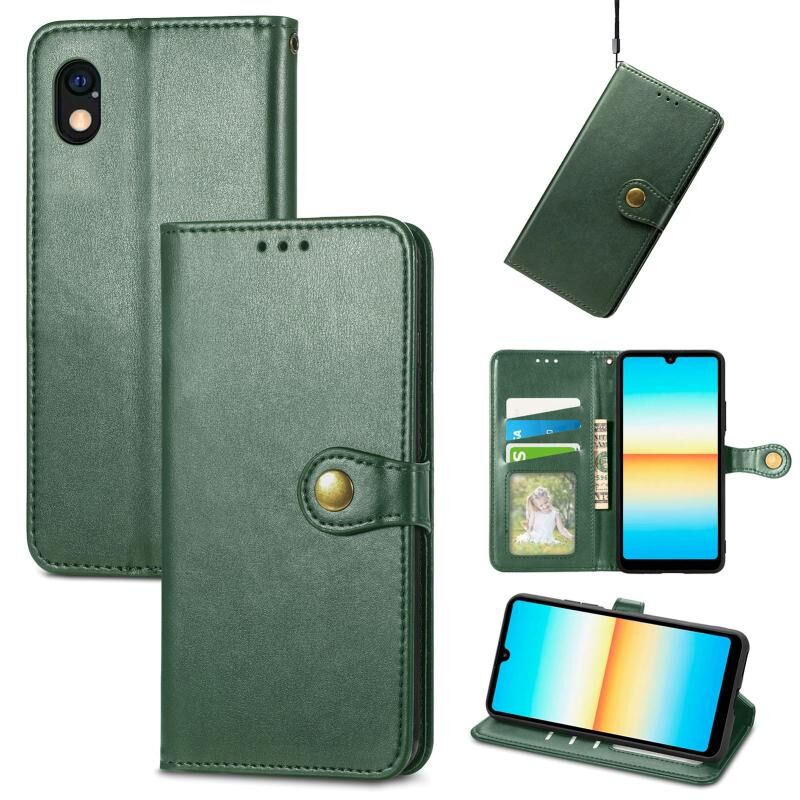 Για Sony Xperia Ace III Ρετρό στερεό χρώμα πόρπη δερμάτινη θήκη τηλεφώνου (πράσινο)