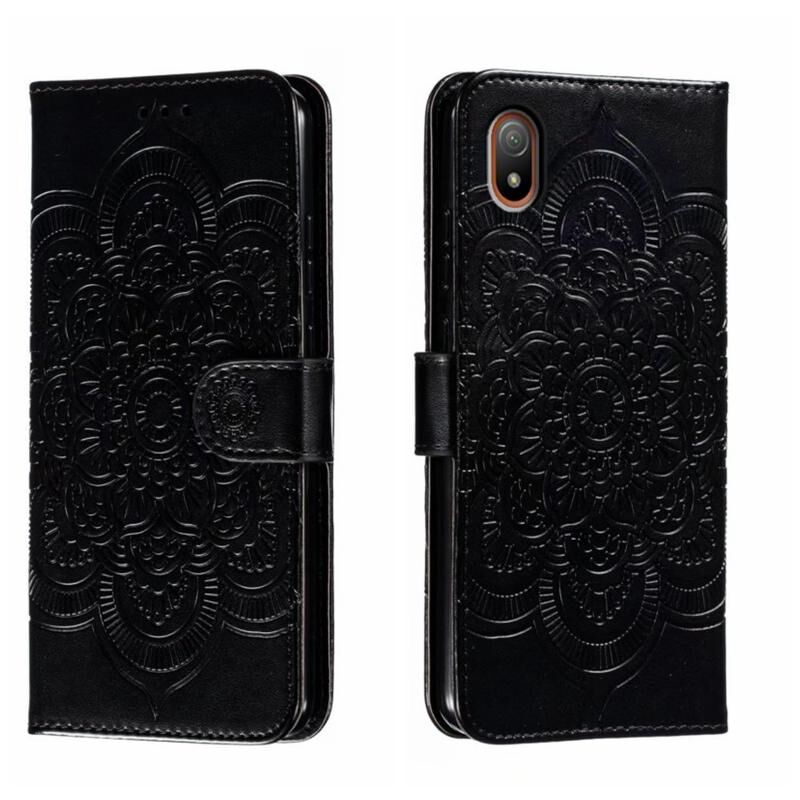 Για Sony Xperia Ace III Sun Mandala ανάγλυφο μοτίβο τηλέφωνο δερμάτινη θήκη (μαύρο)