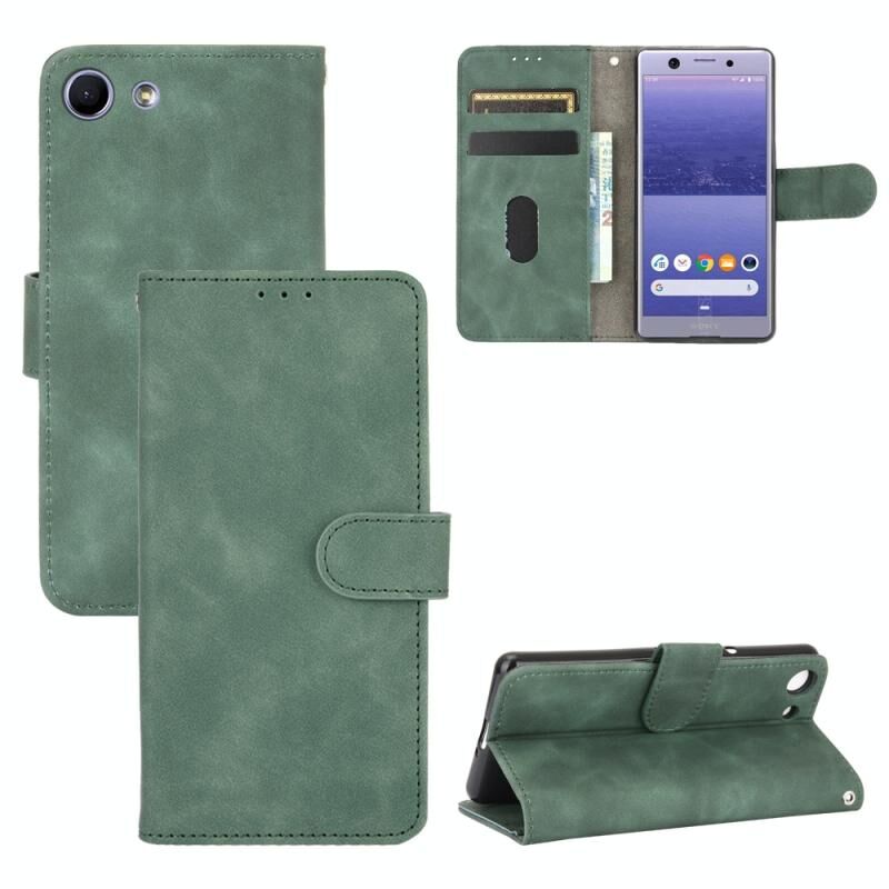 For Sony Xperia Ace Solid Color Skin Feel Magnetic Buckle Horizontal Flip Calf Texture PU Leather Case with Holder & Card Slots & Wallet(Green)