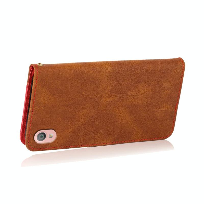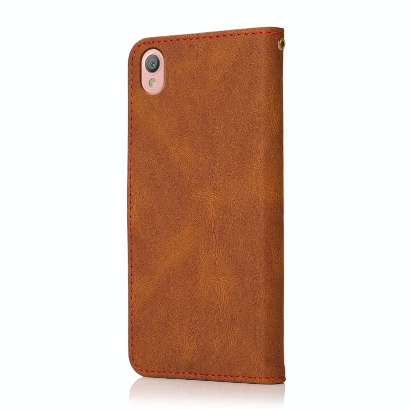 Θήκη τηλεφώνου δερμάτινη με διπλή ραφή για Sony Xperia L1 (Καφέ-Κόκκινο)