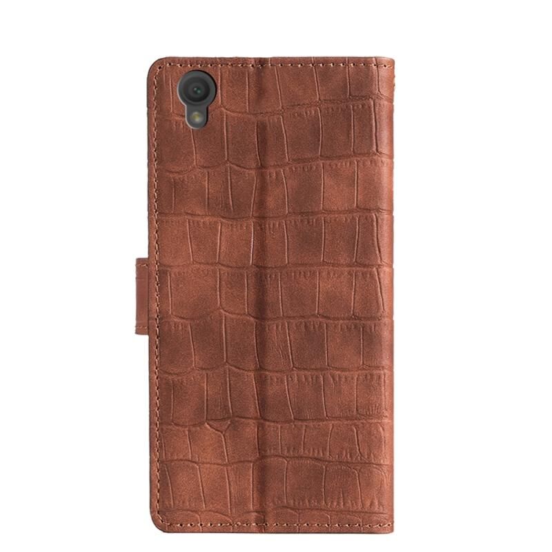 Θήκη τηλεφώνου για Sony Xperia L1, δερμάτινη από PU με υφή κροκόδειλου, με μαγνητικό κούμπωμα (Καφέ)