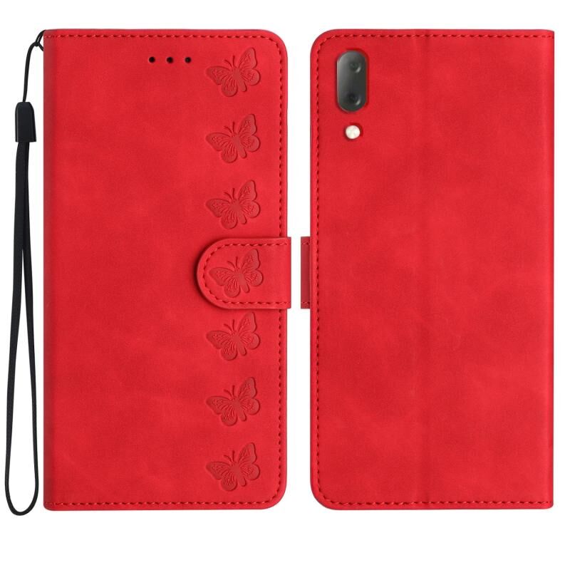 Για Sony Xperia L3 Επτά πεταλούδες ανάγλυφη δερμάτινη θήκη τηλεφώνου (κόκκινο)