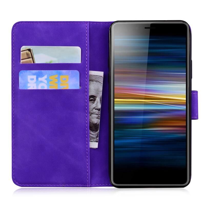 Θήκη δέρματος οριζόντιας αναδίπλωσης με ανάγλυφο σχέδιο τίγρης για Sony Xperia L3 με βάση & υποδοχές καρτών & πορτοφόλι (Πράσινο)