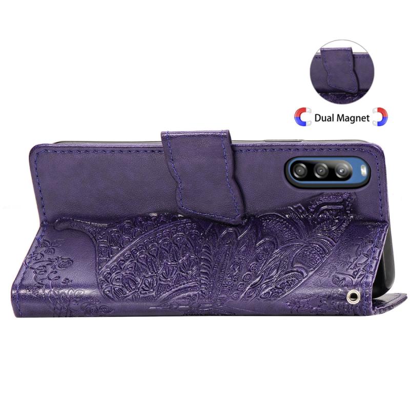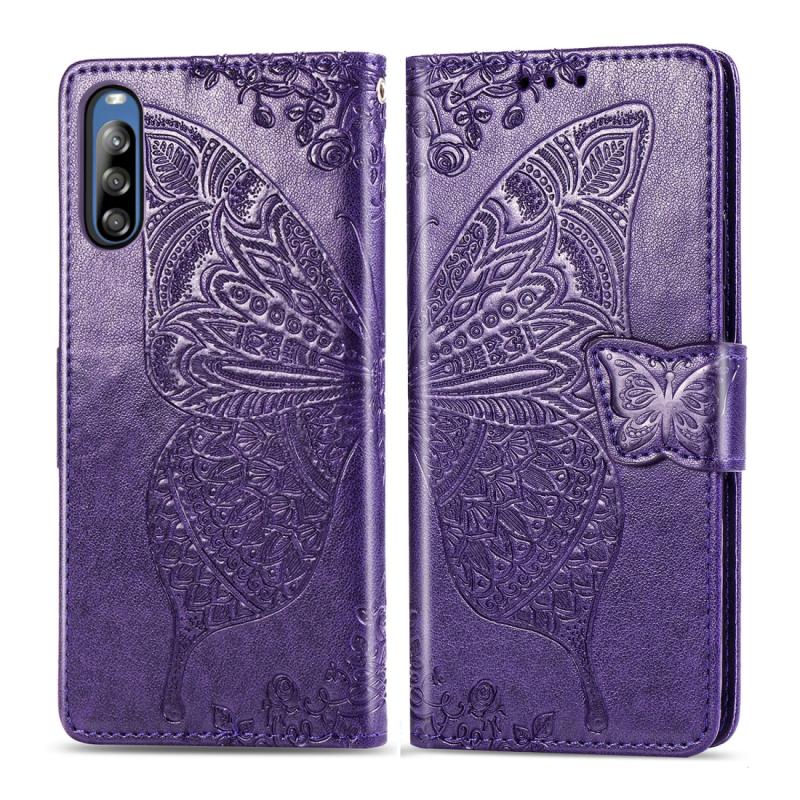 For Sony Xperia L4 Butterfly Love Flower Embossed Horizontal Flip Leather Case with Bracket / Card Slot / Wallet / Lanyard(Dark Purple)