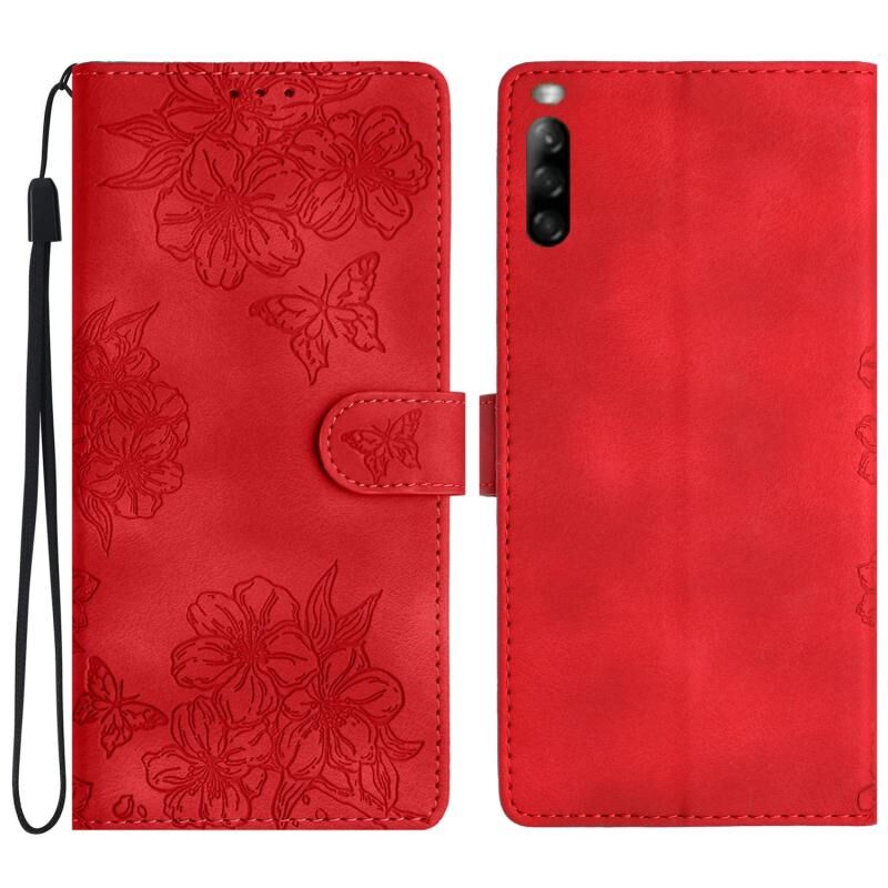 Θήκη τηλεφώνου για Sony Xperia L4 Cherry Blossom Butterfly Skin Feel Embossed PU (Κόκκινη)
