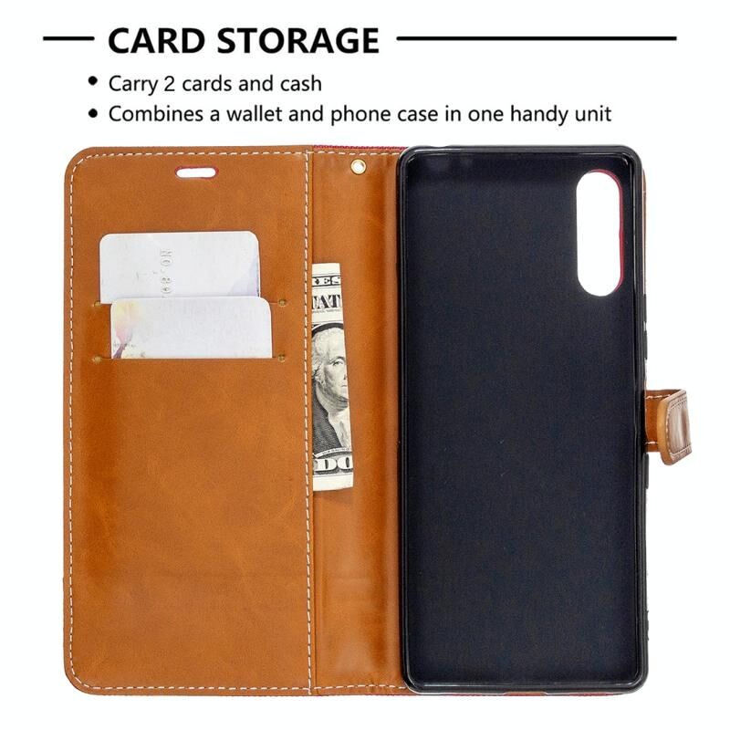 Για το Sony Xperia L4 Χρώμα ταιριάζει με Denim Υφή Οριζόντια Flip δερμάτινη θήκη με θήκη & υποδοχές για κάρτες & πορτοφόλι & κορδόνι (κόκκινο)