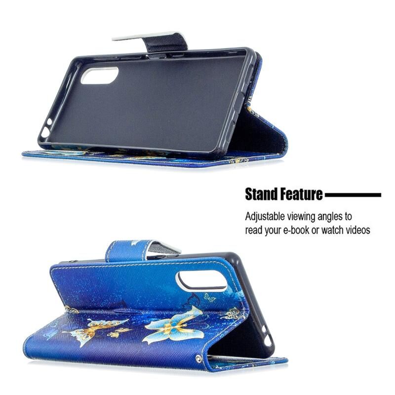 Θήκη δέρματος οριζόντιας αναδίπλωσης με σχέδιο πολύχρωμης ζωγραφικής για Sony Xperia L4 με βάση & υποδοχές καρτών & πορτοφόλι (Μωβ Πεταλούδα)