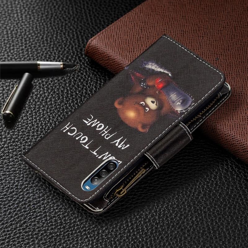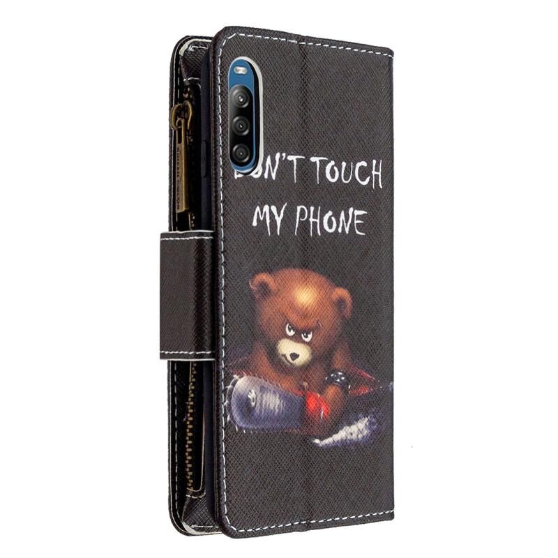 Θήκη δέρματος οριζόντιας αναδίπλωσης με φερμουάρ και σχέδιο πολύχρωμης ζωγραφικής για Sony Xperia L4 με βάση για κάρτες και πορτοφόλι (Αρκούδα)