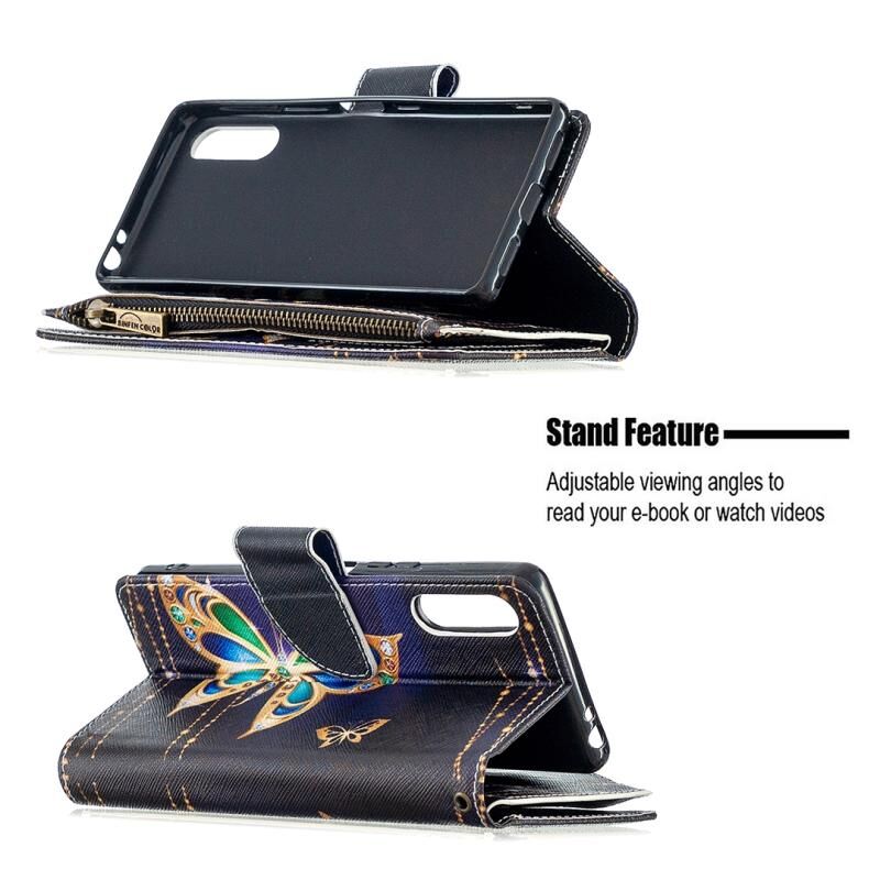 Θήκη δέρματος οριζόντιας αναδίπλωσης με φερμουάρ και σχέδιο πολύχρωμης ζωγραφικής για Sony Xperia L4 με βάση για κάρτες & θήκη πορτοφολιού (Μεγάλη Πεταλούδα)