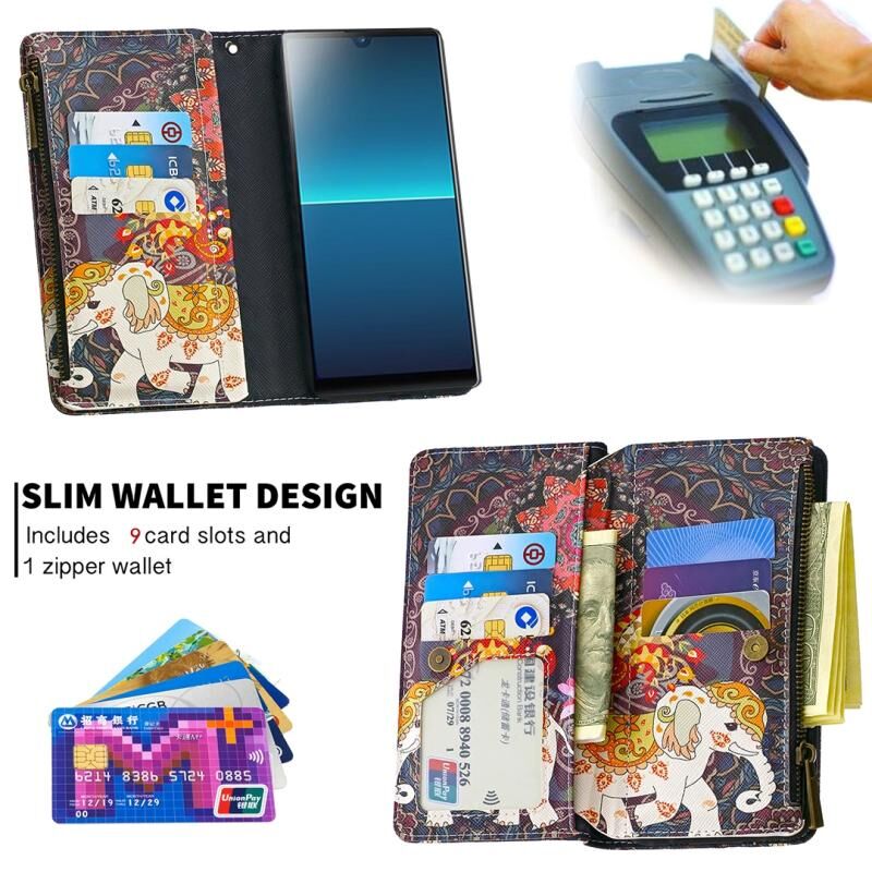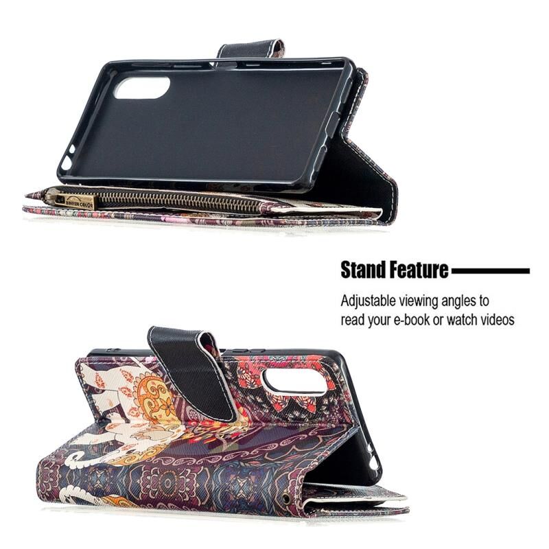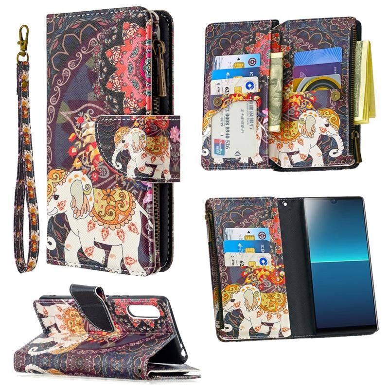 Θήκη δέρματος οριζόντιας αναδίπλωσης με φερμουάρ και σχέδιο πολύχρωμης ζωγραφικής για Sony Xperia L4 με βάση για κάρτες και πορτοφόλι (Λουλούδια και Ελέφαντες)