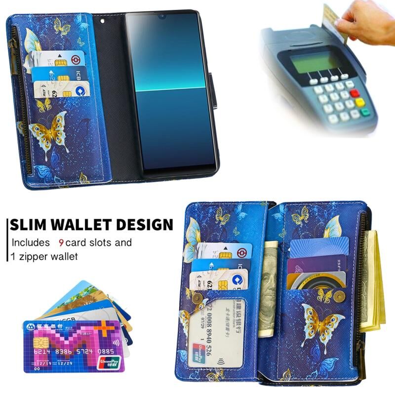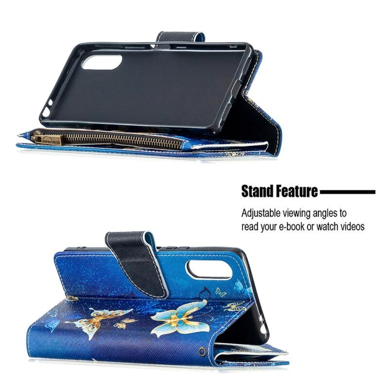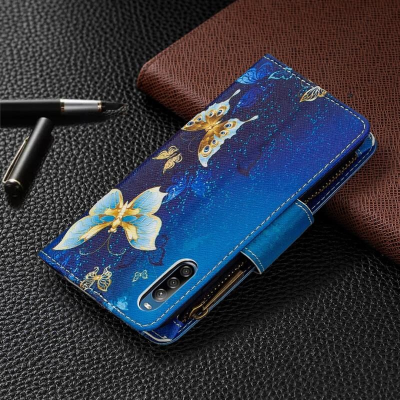 Θήκη δέρματος οριζόντιας αναδίπλωσης με φερμουάρ και σχέδιο πολύχρωμης ζωγραφικής για Sony Xperia L4 με βάση για κάρτες και πορτοφόλι (Χρυσή Πεταλούδα)