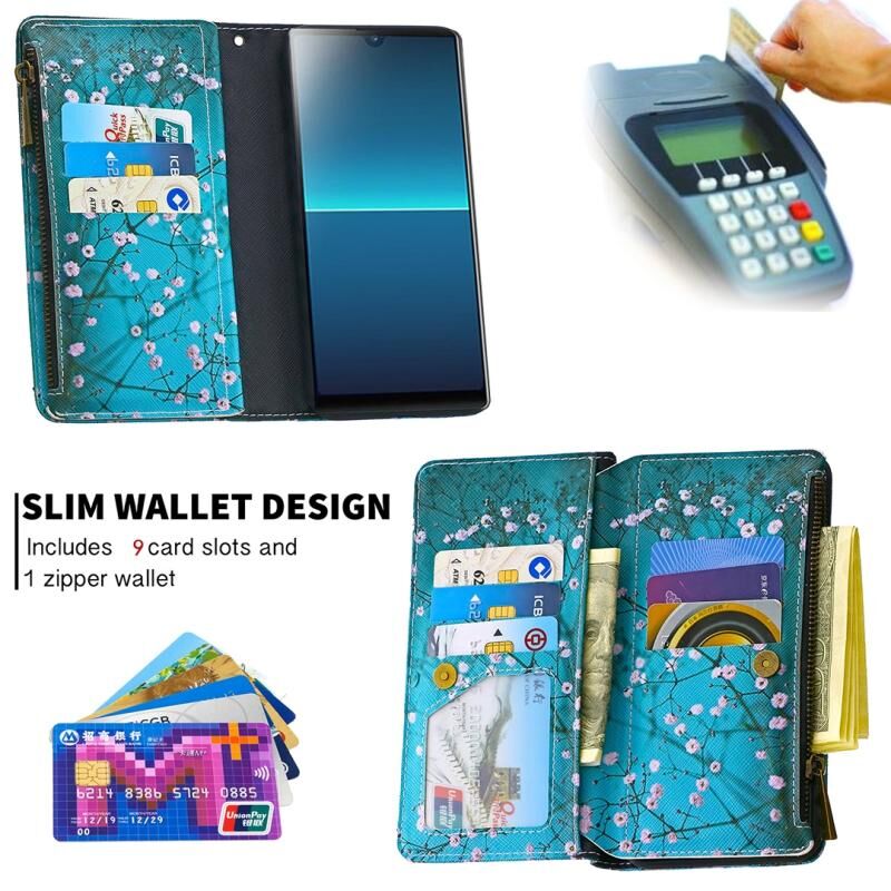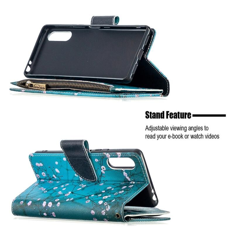 Θήκη δέρματος οριζόντιας αναδίπλωσης με φερμουάρ και σχέδιο πολύχρωμης ζωγραφικής για Sony Xperia L4 με θήκη, υποδοχές καρτών και πορτοφόλι (Λουλούδι Δαμασκηνιάς)