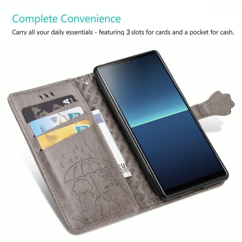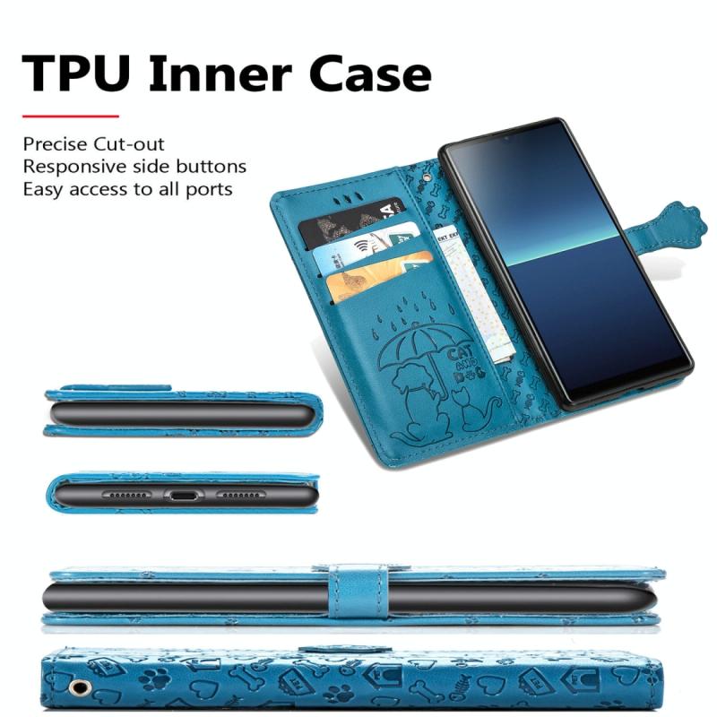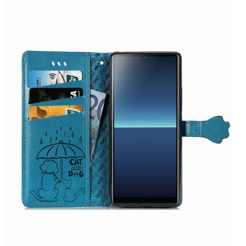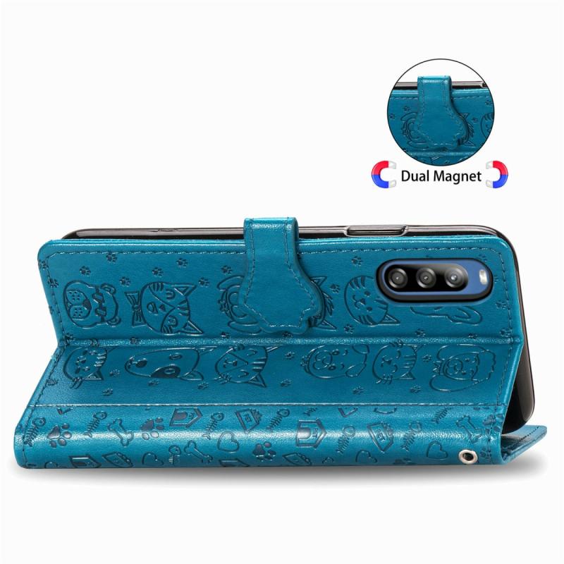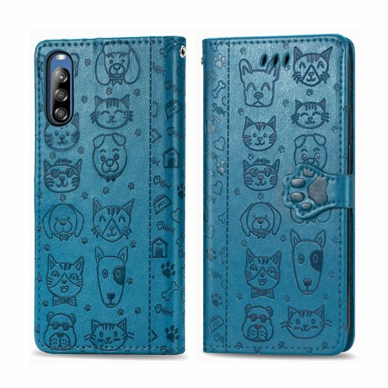 For Sony Xperia L4 Cute Cat and Dog Embossed Horizontal Flip Leather Case with Bracket / Card Slot / Wallet / Lanyard(Blue)