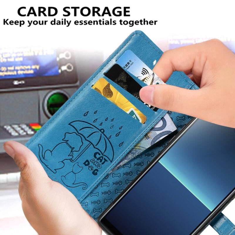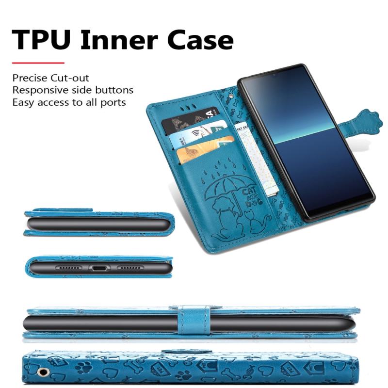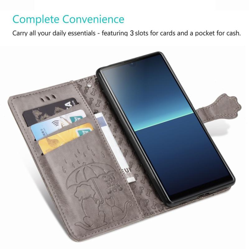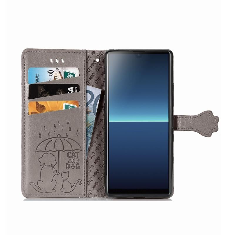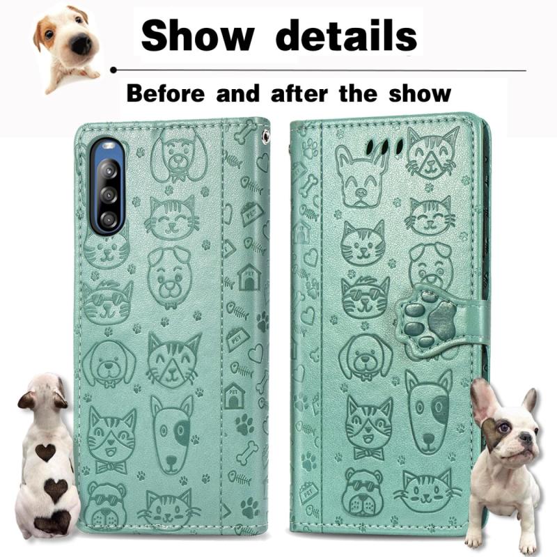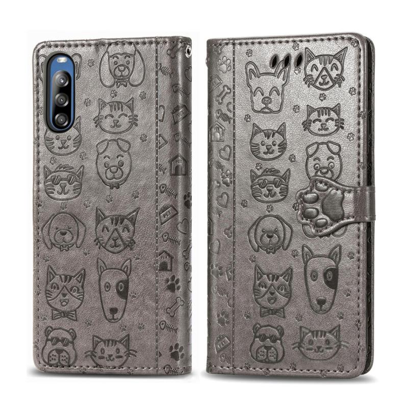 For Sony Xperia L4 Cute Cat and Dog Embossed Horizontal Flip Leather Case with Bracket / Card Slot / Wallet / Lanyard(Gray)