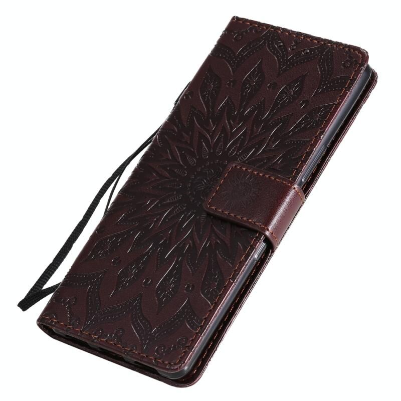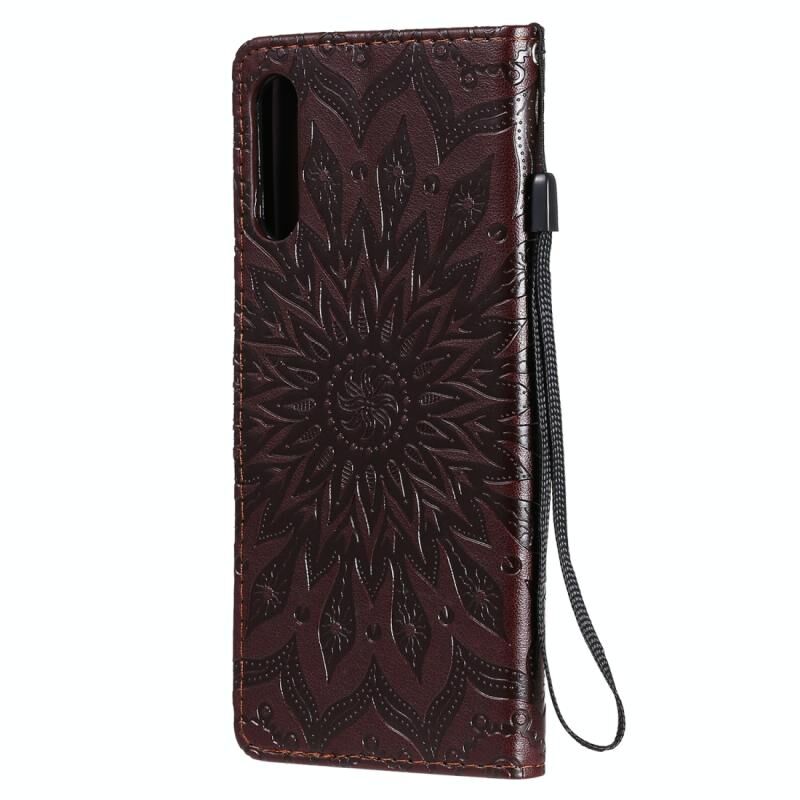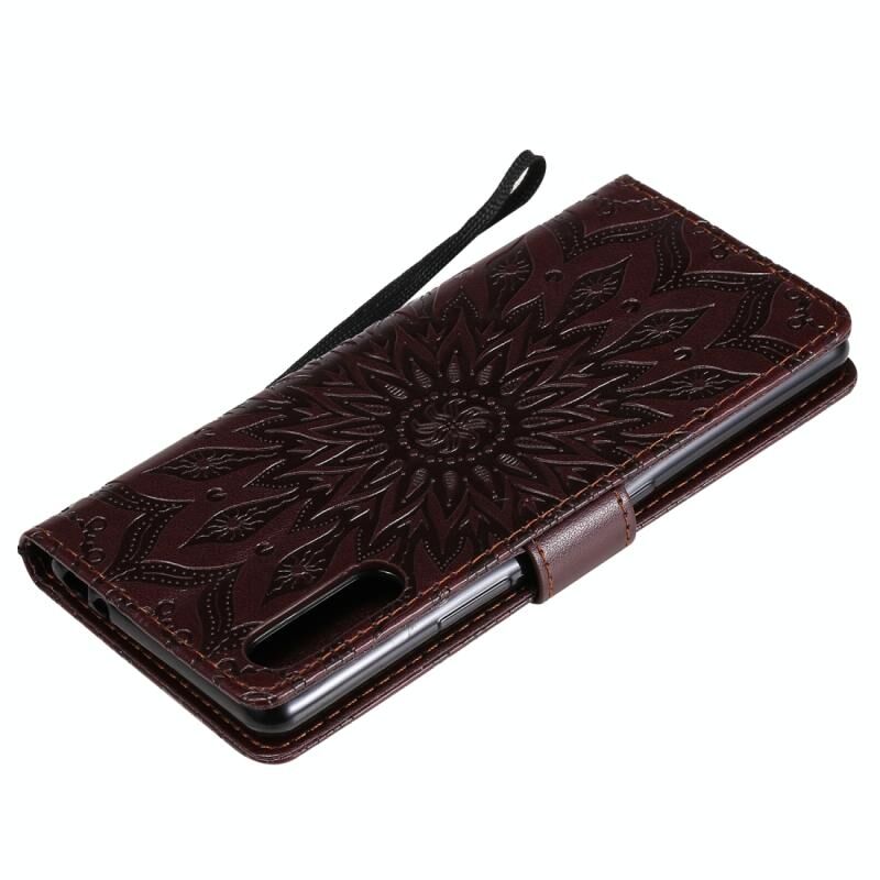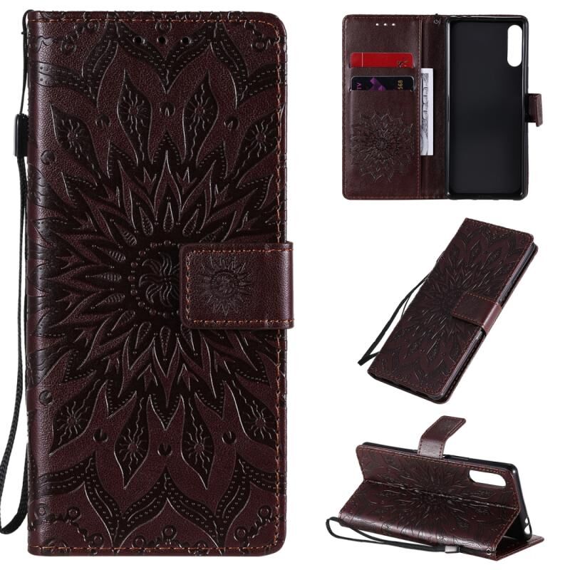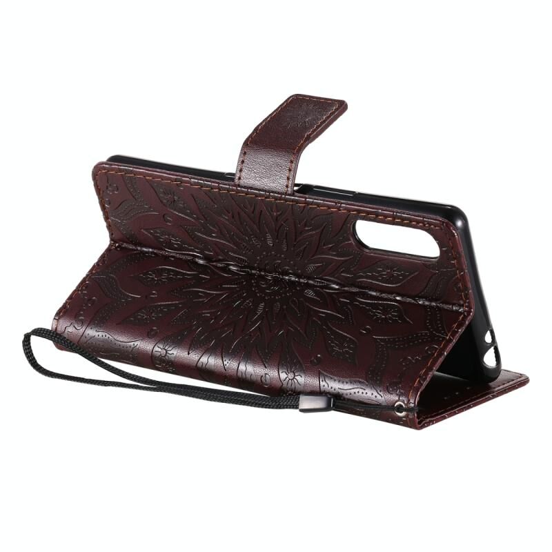 Για Sony Xperia L4 Ανάγλυφο ηλιοτρόπιο μοτίβο οριζόντια Flip PU δέρμα υπόθεση με θήκη & υποδοχές για κάρτες & πορτοφόλι & κορδόνι (καφέ)