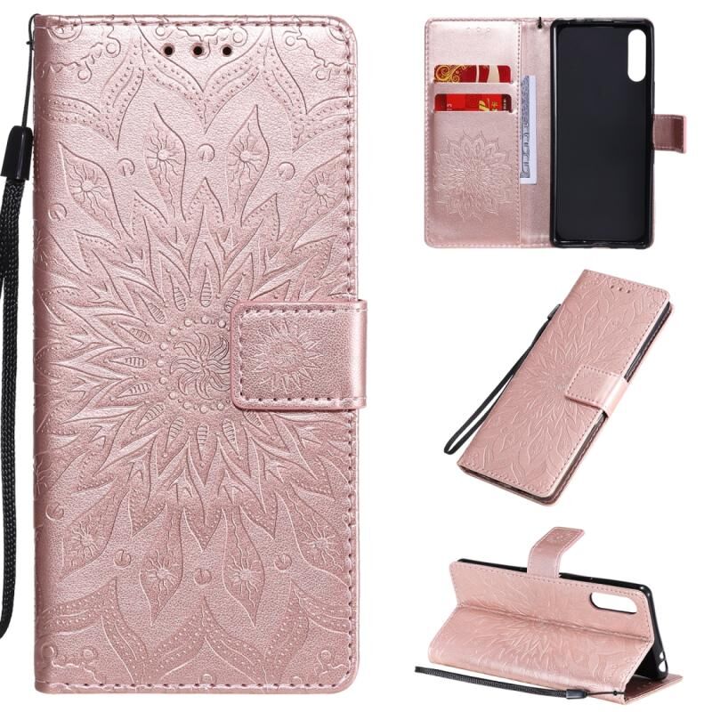 Για Sony Xperia L4 Ανάγλυφο ηλιοτρόπιο μοτίβο οριζόντια Flip PU δέρμα υπόθεση με θήκη & υποδοχές για κάρτες & πορτοφόλι & κορδόνι (Rose Gold)