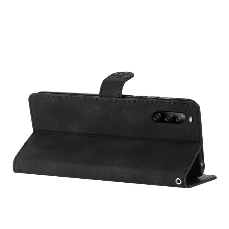 Θήκη τηλεφώνου δερμάτινη με ανάγλυφο σχέδιο λουλουδιών και πεταλούδων για Sony Xperia L4 (Μαύρο)