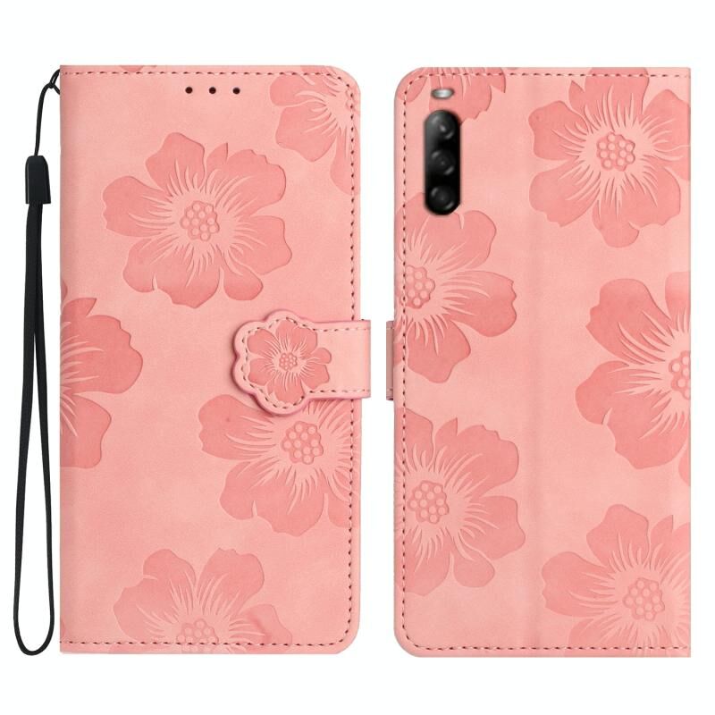 Για Sony Xperia L4 λουλούδι ανάγλυφο μοτίβο δερμάτινη θήκη τηλεφώνου (ροζ)