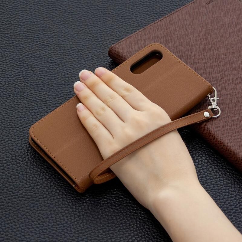 Για το Sony Xperia L4 Litchi Texture Pure Color Οριζόντια Flip PU δερμάτινη θήκη με θήκη & υποδοχές για κάρτες & πορτοφόλι & κορδόνι (καφέ)