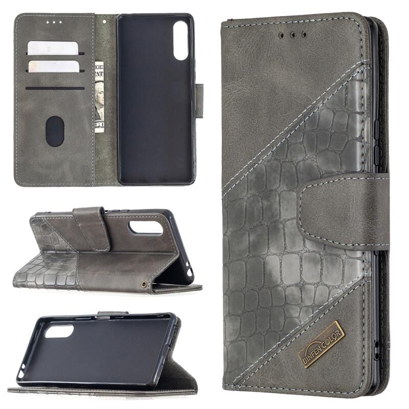 Θήκη για Sony Xperia L4, οριζόντια, από δερματίνη PU με υφή κροκόδειλου, σε μαύρο χρώμα, με πορτοφόλι, βάση και θήκες για κάρτες.