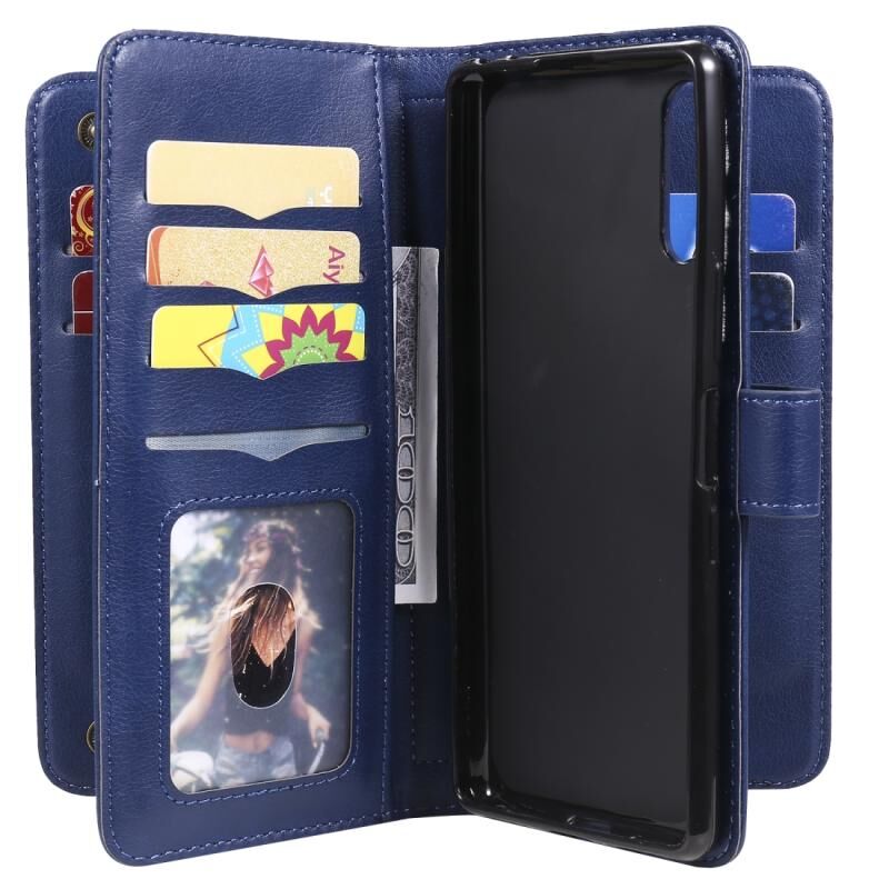 Για το Sony Xperia L4 Πολυλειτουργική μαγνητική χάλκινη πόρπη Οριζόντια Flip Αμιγές χρώμα δερμάτινη θήκη με 10 υποδοχές για κάρτες & πορτοφόλι & θήκη & κορνίζα φωτογραφιών(Navy Blue)