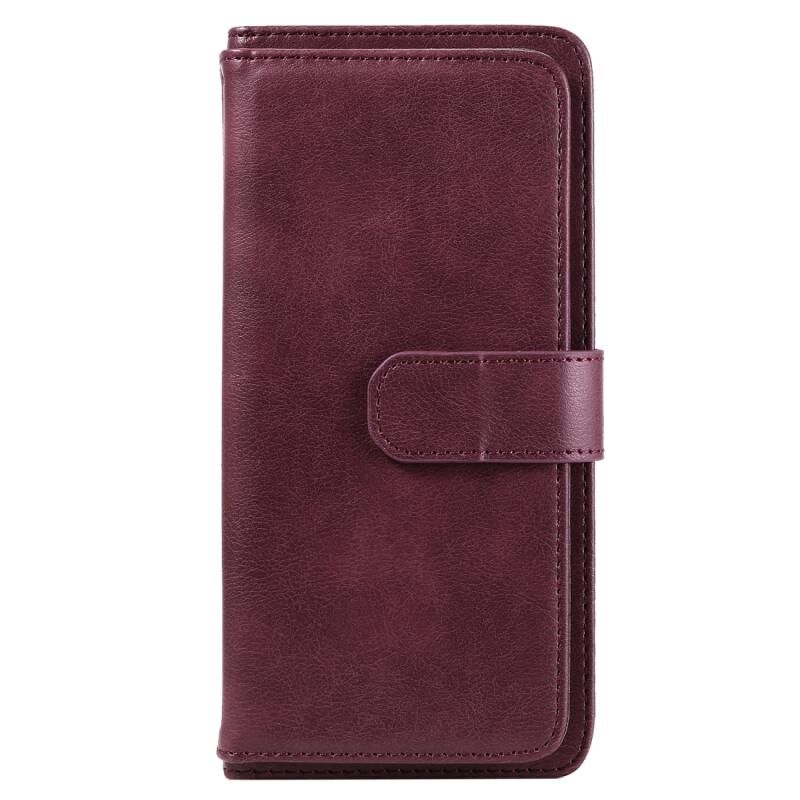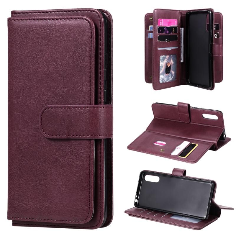 Για Sony Xperia L4 Πολυλειτουργική μαγνητική χάλκινη πόρπη οριζόντια Flip Solid Color δερμάτινη θήκη με 10 υποδοχές για κάρτες & πορτοφόλι & θήκη & κορνίζα φωτογραφιών (κόκκινο κρασί)