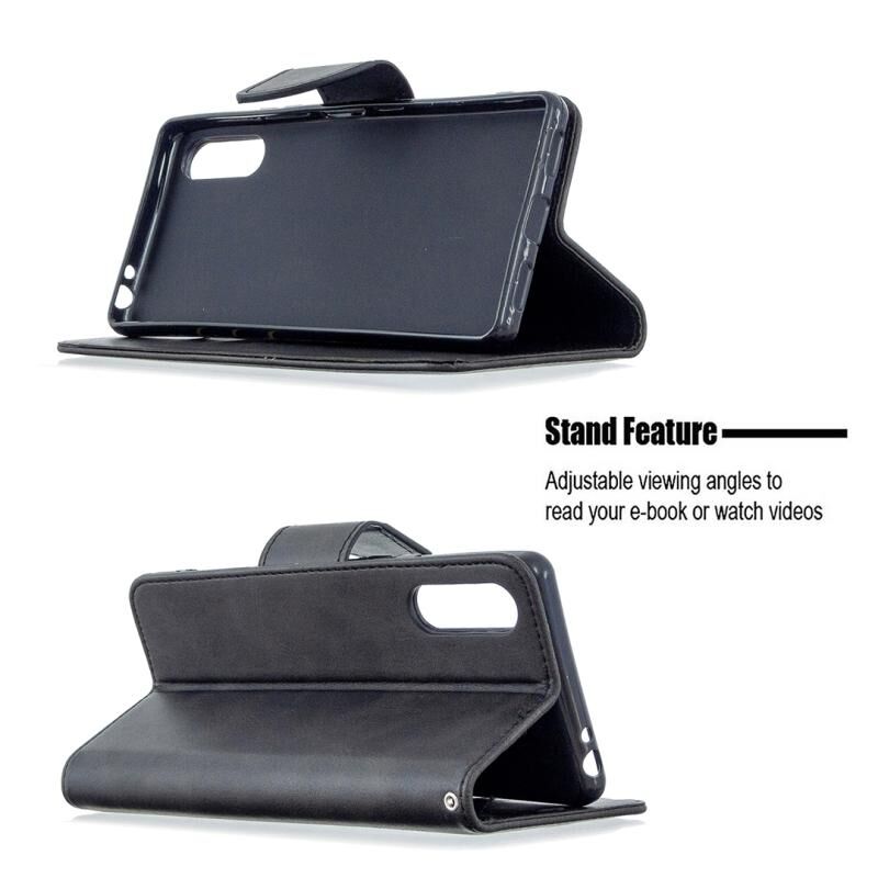 Για το Sony Xperia L4 Retro Lambskin Texture Pure Color Horizontal Flip PU Leather Case με θήκη & υποδοχές για κάρτες & πορτοφόλι & κορδόνι (Μαύρο)