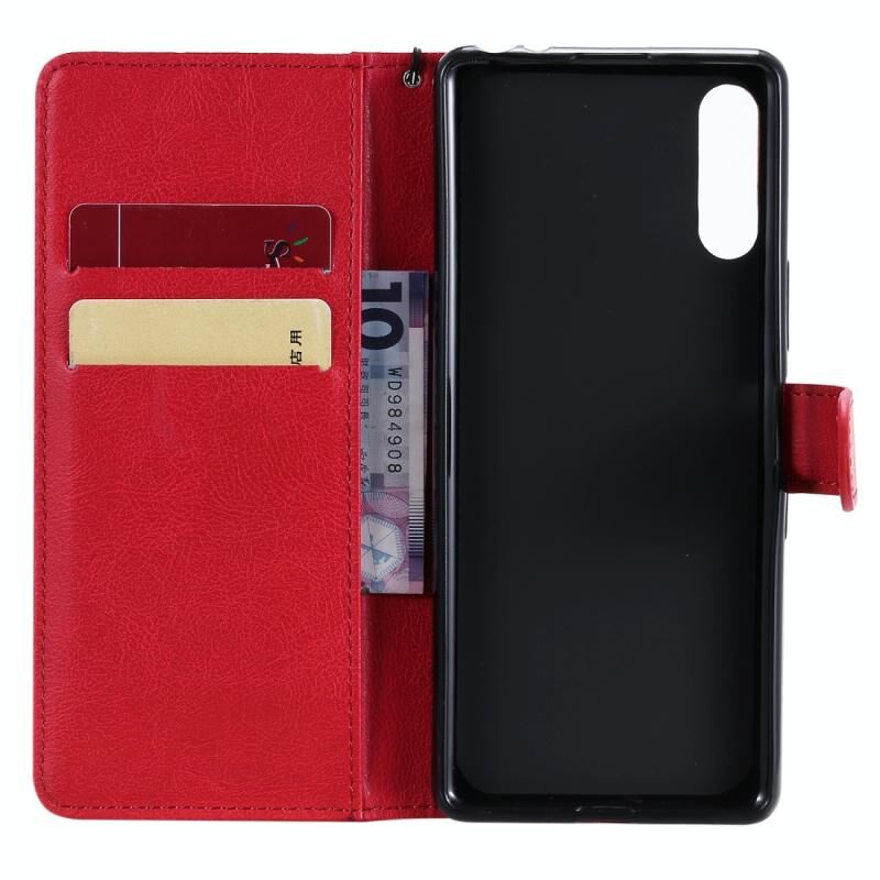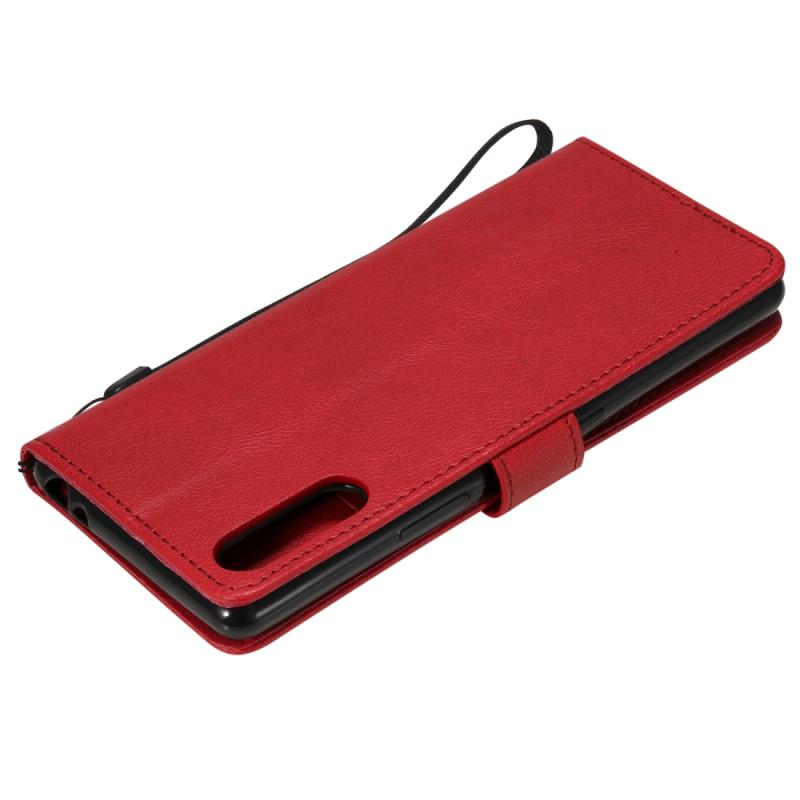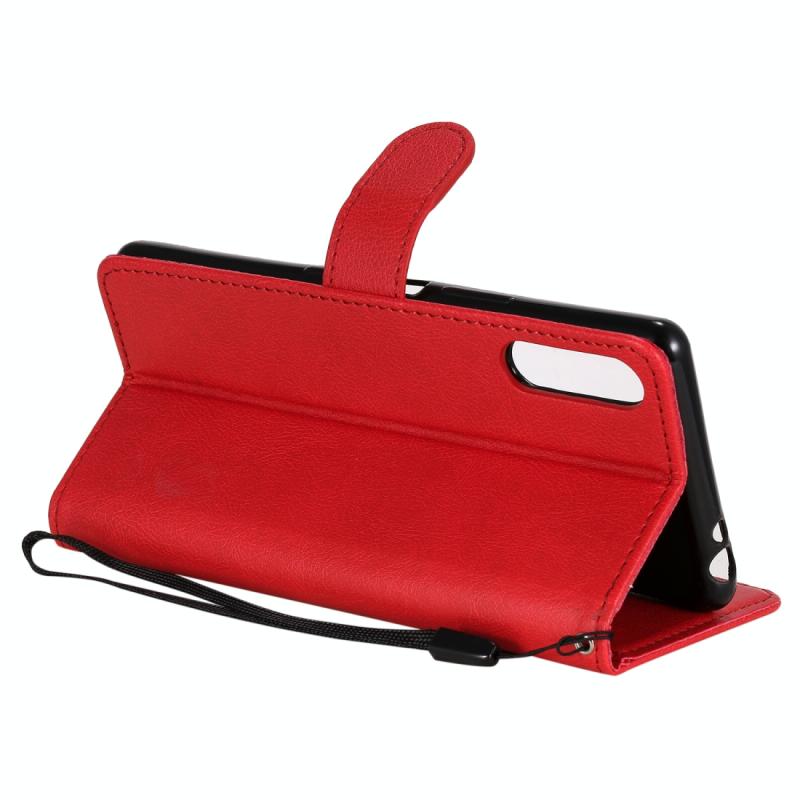 Θήκη δέρματος προστασίας για Sony Xperia L4, μονόχρωμη, οριζόντια αναδίπλωση με βάση, θήκες καρτών, πορτοφόλι, κορνίζα φωτογραφιών & λουρί (Κόκκινο)