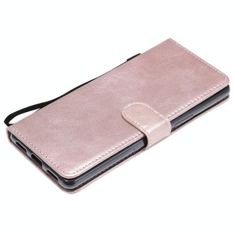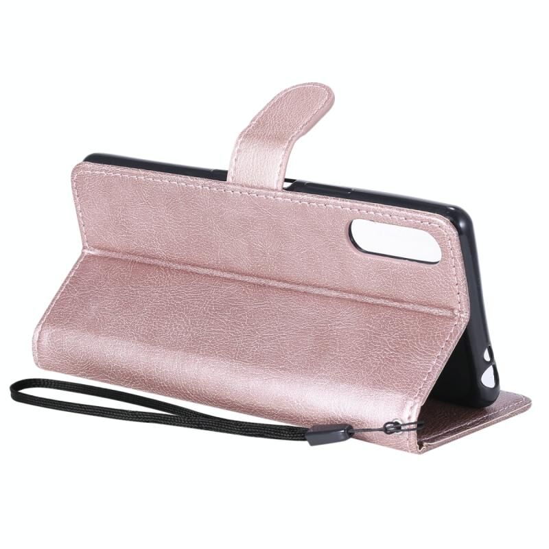 Για Sony Xperia L4 Αμιγές χρώμα Οριζόντια Flip Προστατευτική δερμάτινη θήκη με θήκη & υποδοχές για κάρτες & πορτοφόλι & πλαίσιο φωτογραφιών & κορδόνι (ροζ χρυσό)