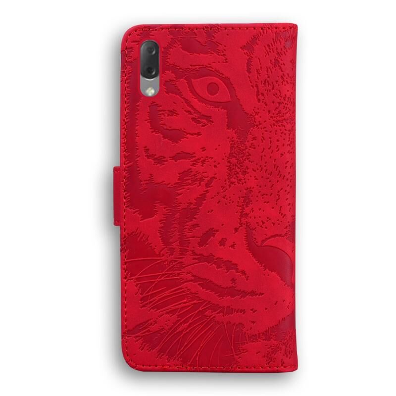 Θήκη δέρματος οριζόντιας αναδίπλωσης με ανάγλυφο μοτίβο τίγρης για Sony Xperia L4 με βάση & υποδοχές καρτών & πορτοφόλι (Κόκκινο)
