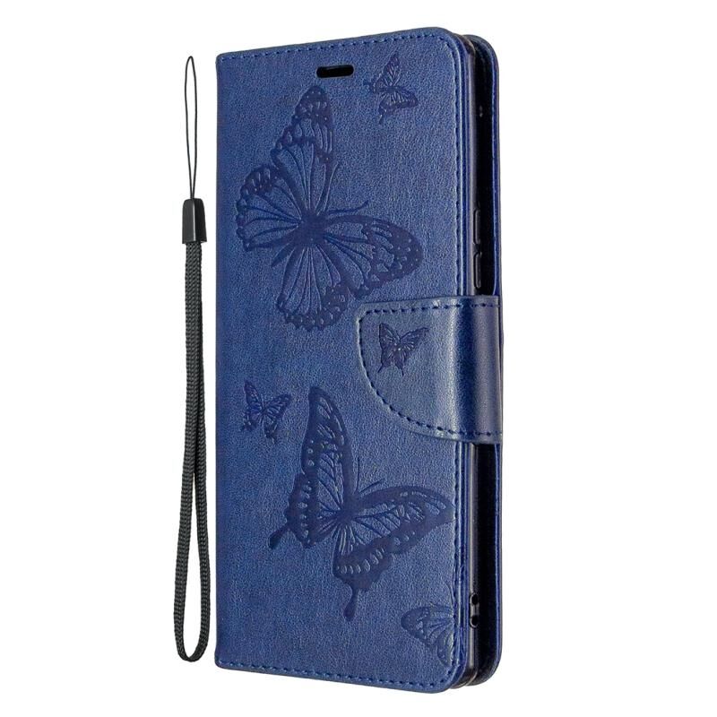 Για Sony Xperia L4 Δύο πεταλούδες ανάγλυφο μοτίβο οριζόντια Flip δερμάτινη θήκη με θήκη & υποδοχή για κάρτες & πορτοφόλι & κορδόνι (σκούρο μπλε)