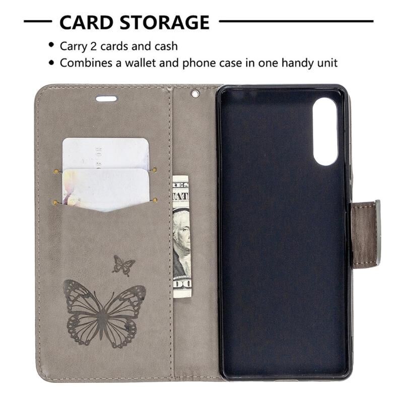 Για Sony Xperia L4 Δύο πεταλούδες ανάγλυφο μοτίβο οριζόντια Flip δερμάτινη θήκη με κάτοχο & υποδοχή για κάρτες & πορτοφόλι & κορδόνι (γκρι)