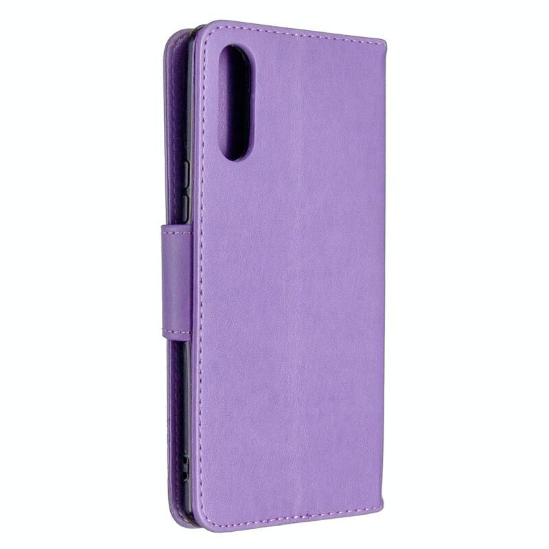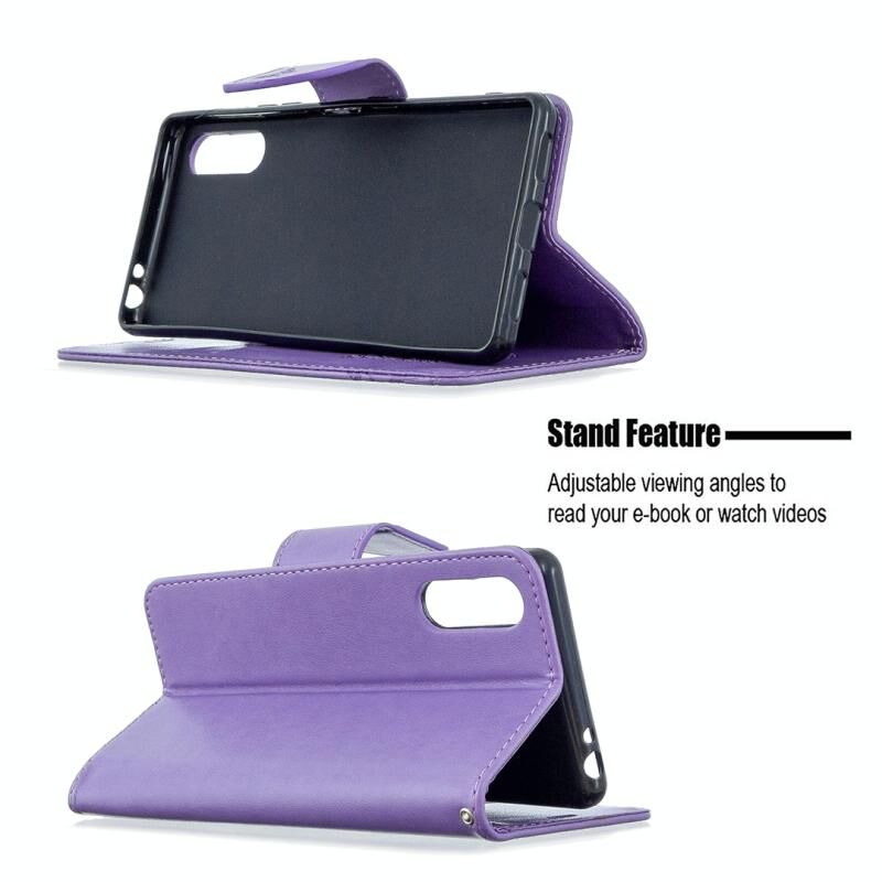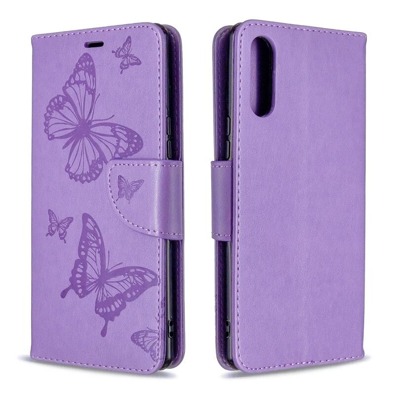 Για Sony Xperia L4 Δύο πεταλούδες ανάγλυφο μοτίβο οριζόντια Flip δερμάτινη θήκη με κάτοχο & υποδοχή για κάρτες & πορτοφόλι & κορδόνι (μωβ)