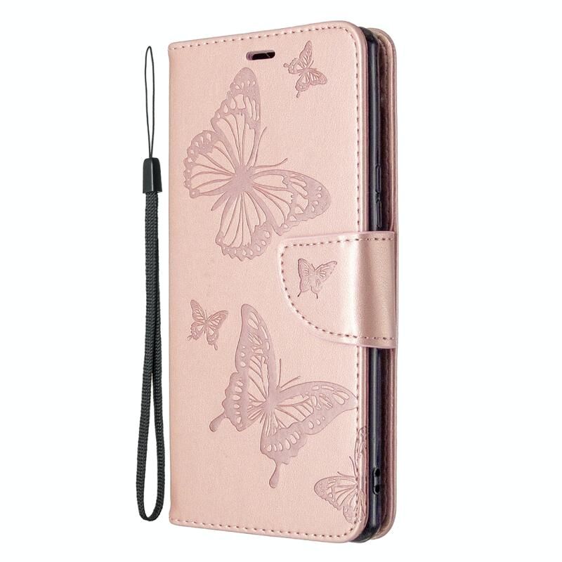 Για Sony Xperia L4 Δύο πεταλούδες ανάγλυφο μοτίβο οριζόντια Flip δερμάτινη θήκη με υποδοχή & υποδοχή για κάρτες & πορτοφόλι & κορδόνι (ροζ χρυσό)