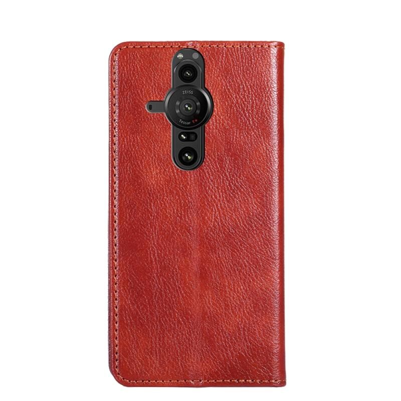 Για Sony Xperia Pro-I Gloss Oil Solid Color Μαγνητική δερμάτινη θήκη τηλεφώνου (καφέ)