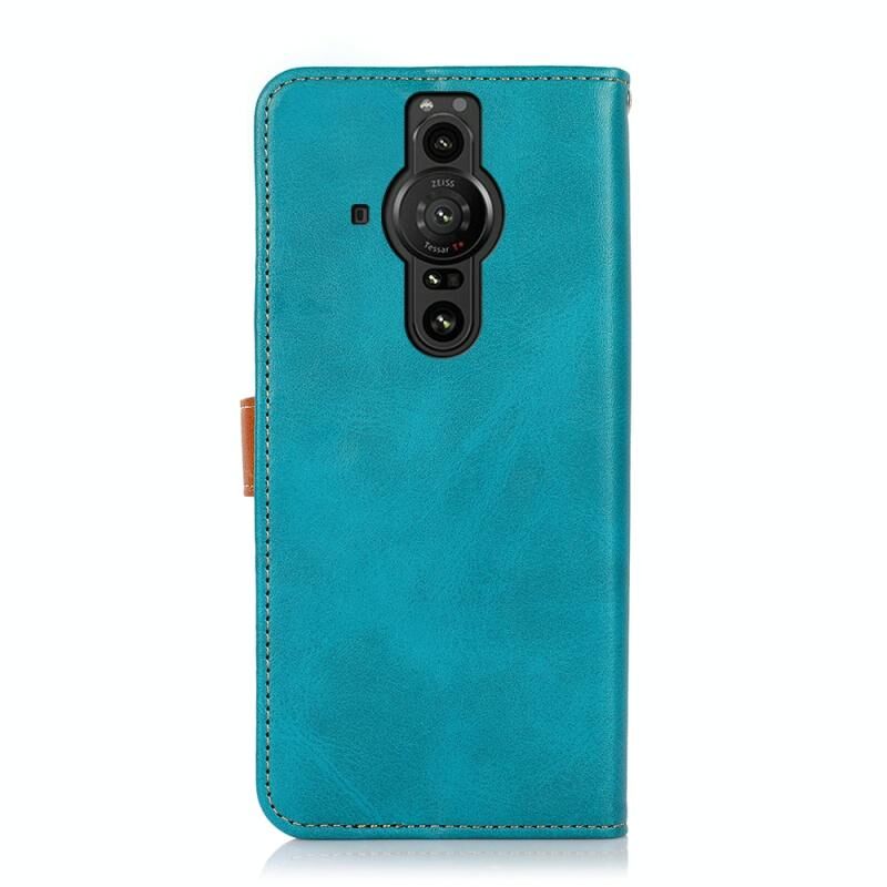 Για το Sony Xperia Pro-I KHAZNEH Διχρωμία δέρμα αγελάδας Υφή οριζόντια Flip δέρμα τηλέφωνο υπόθεση με θήκη & υποδοχές για κάρτες & πορτοφόλι & κορνίζα φωτογραφιών (μπλε)