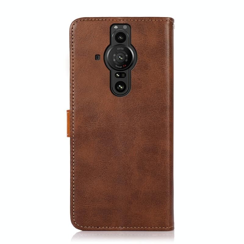 Για το Sony Xperia Pro-I KHAZNEH Διχρωμία δέρμα αγελάδας Υφή οριζόντια Flip δέρμα τηλέφωνο υπόθεση με θήκη & υποδοχές για κάρτες & πορτοφόλι & πλαίσιο φωτογραφιών (καφέ)