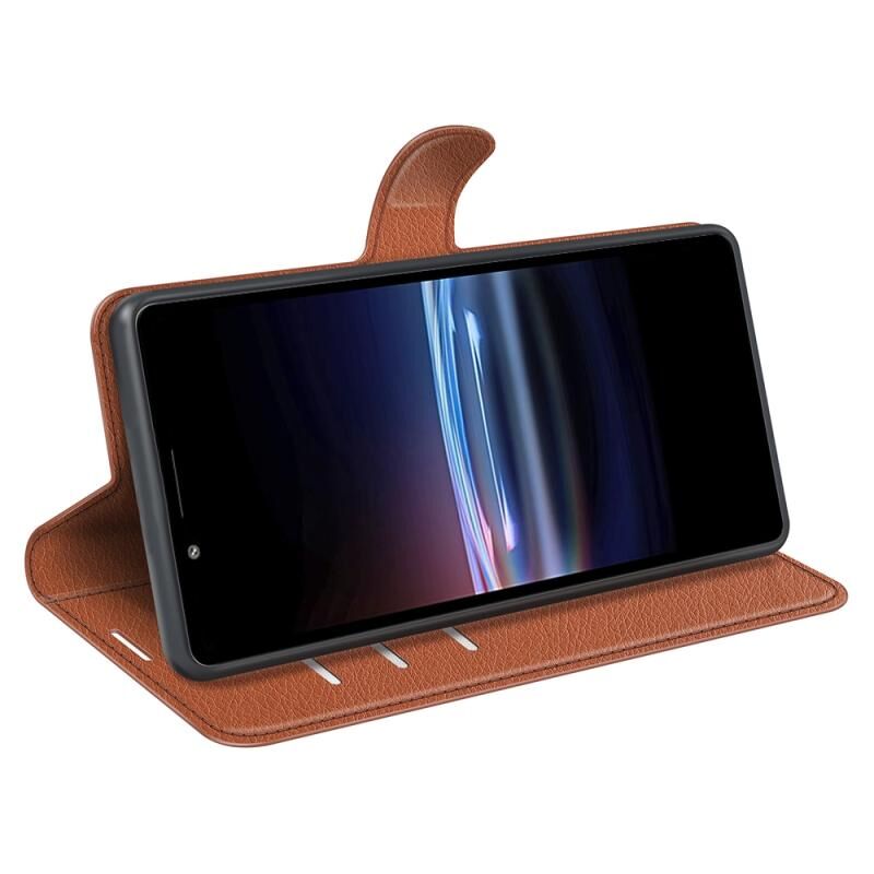 Για Sony Xperia Pro-I Litchi Υφή Οριζόντια Flip Προστατευτική θήκη με θήκη & υποδοχές για κάρτες & πορτοφόλι (καφέ)