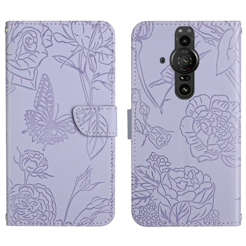 Θήκη τηλεφώνου δέρμα ανάγλυφο με σχέδιο πεταλούδας και παιώνιας για Sony Xperia Pro-I (Κόκκινο)