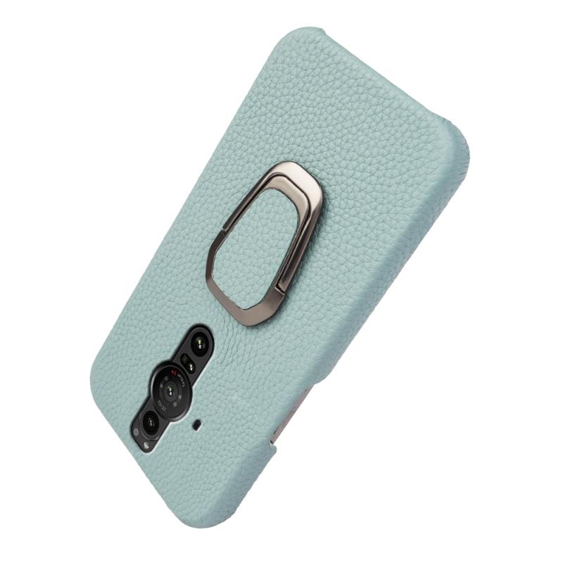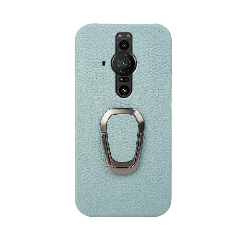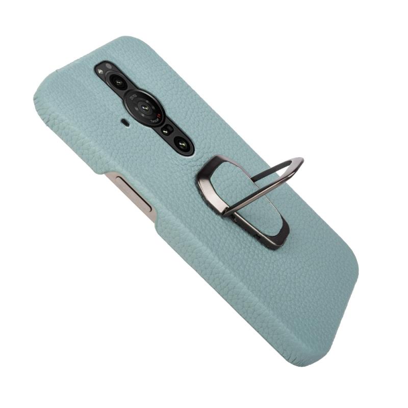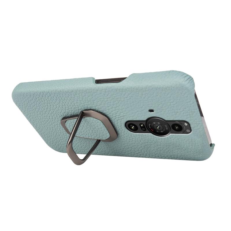 For Sony Xperia Pro-l Ring Holder Litchi Texture Genuine Leather Phone Case(Cyan)