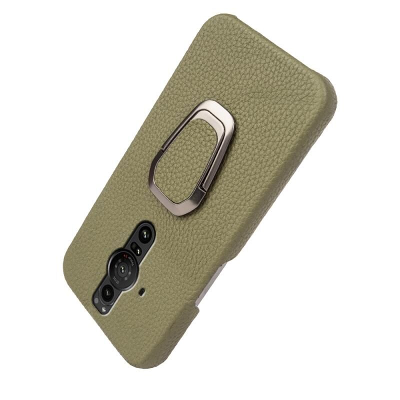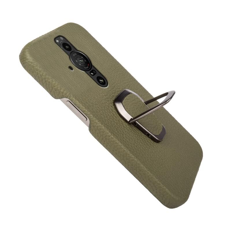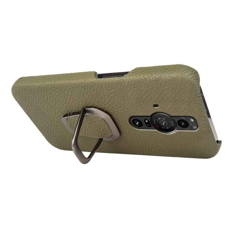Θήκη τηλεφώνου από γνήσιο δέρμα με υφή λitchi και δακτύλιο στήριξης για Sony Xperia Pro-l (Μαύρο)