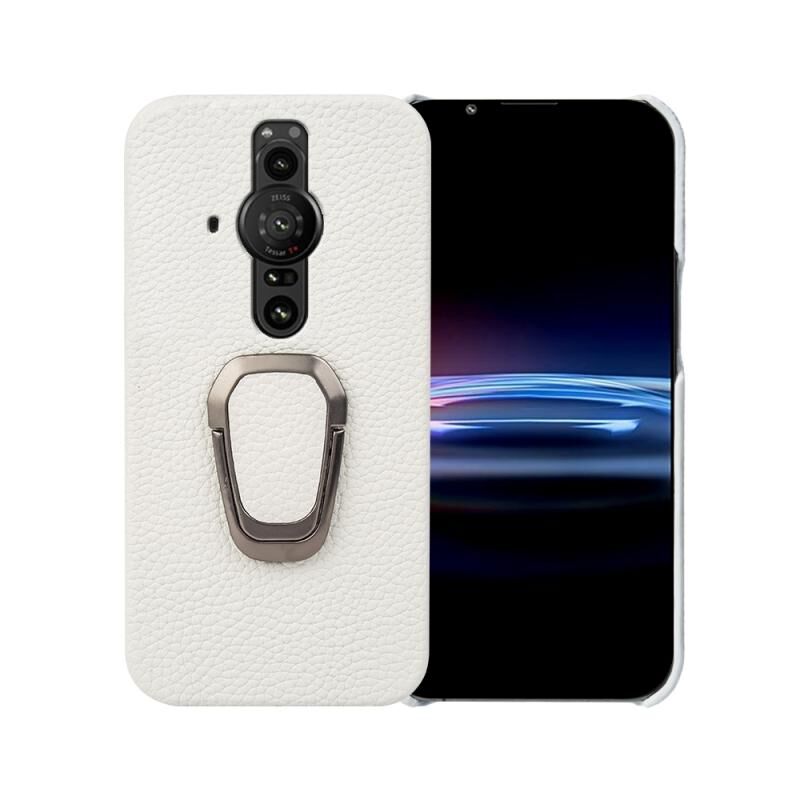 Θήκη τηλεφώνου από γνήσιο δέρμα με υφή λitchi και δακτύλιο στήριξης για Sony Xperia Pro-l (Μαύρο)
