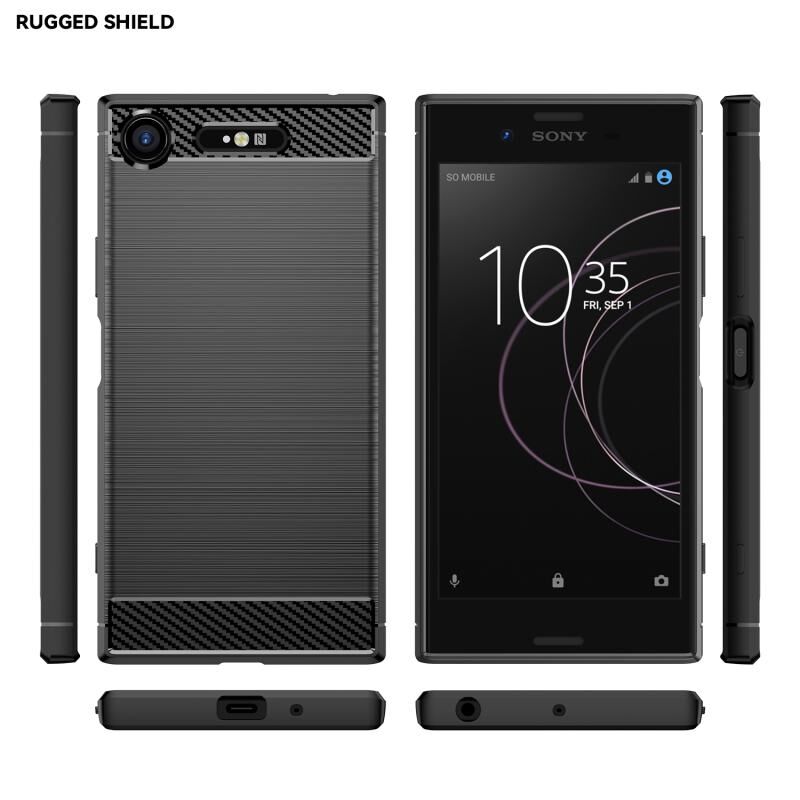 Για Sony Xperia XZ1 βουρτσισμένη υφή Carbon Fiber TPU υπόθεση τηλεφώνου (μαύρο)