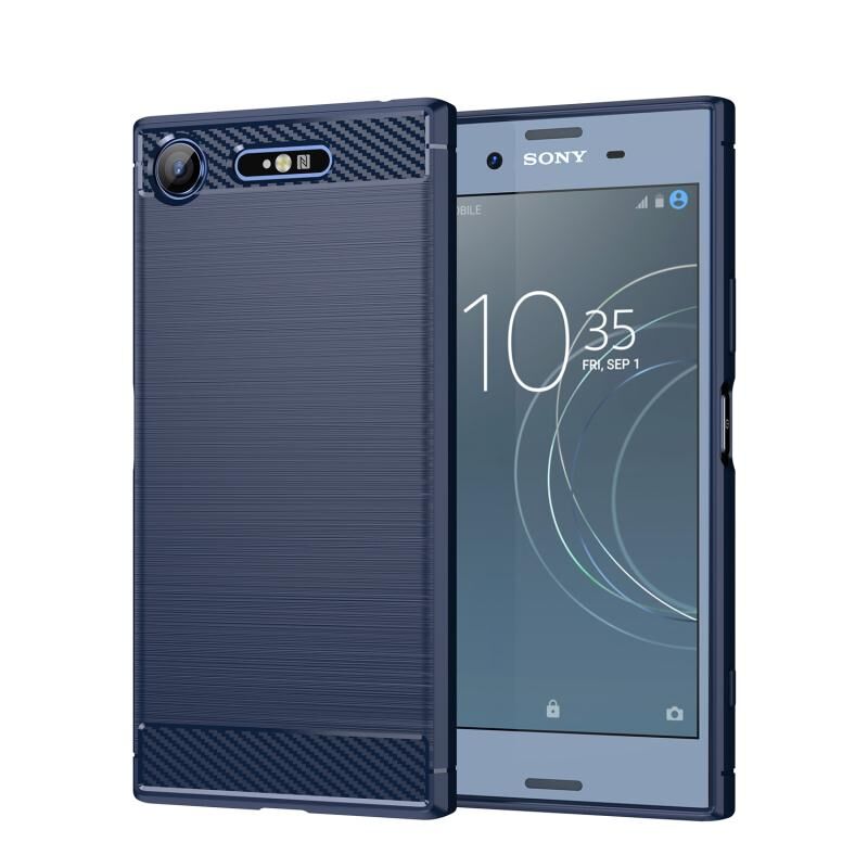 Για Sony Xperia XZ1 βουρτσισμένη υφή Carbon Fiber TPU υπόθεση τηλεφώνου (μπλε)