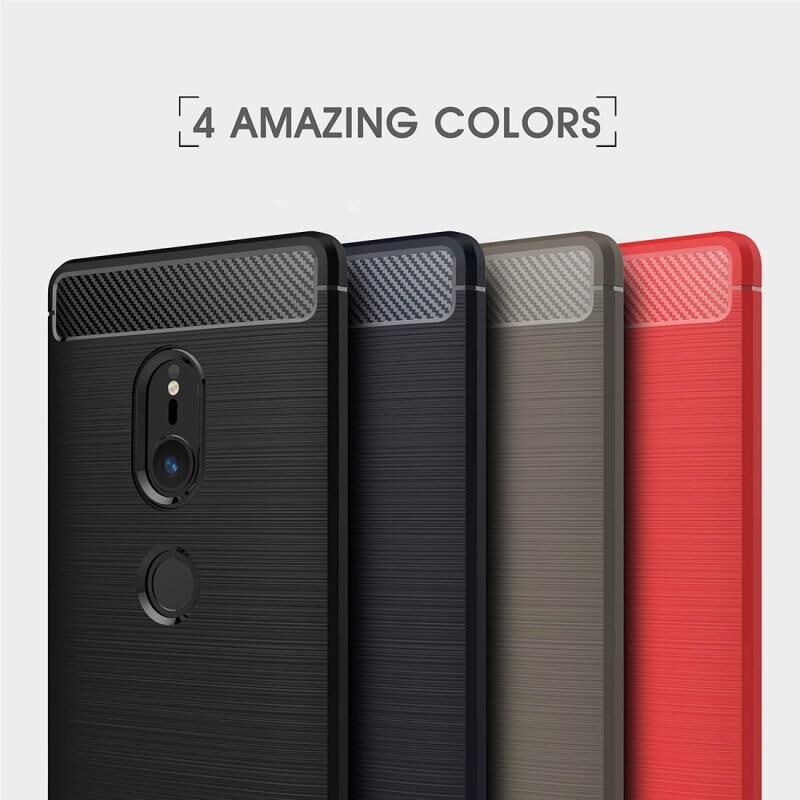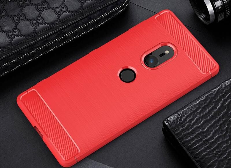 Για το Sony Xperia XZ2 βουρτσισμένη υφή ανθρακονήματος Shockproof TPU προστατευτική πίσω θήκη (κόκκινο)
